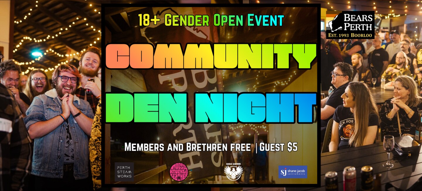 Bears Perth Community Open Den Nights are for anyone 18+. Bring your sister, bring your mum, bring your bestie. Everyone is welcome in the den on a Community Den Night! 🐻